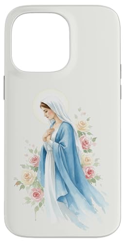 Prière catholique Vierge Marie Rose Bleu Coque pour iPhone 15 Pro Max