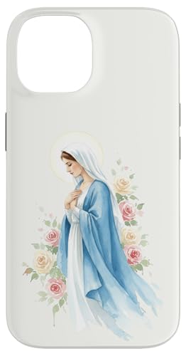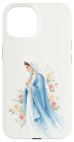 Prière catholique Vierge Marie Rose Bleu Coque pour iPhone 15