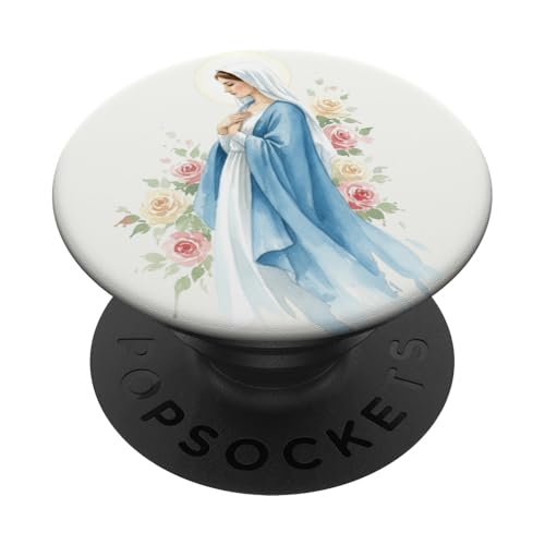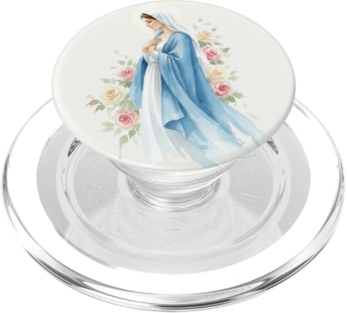 Prière catholique Vierge Marie Rose Bleu PopSockets PopGrip pour MagSafe