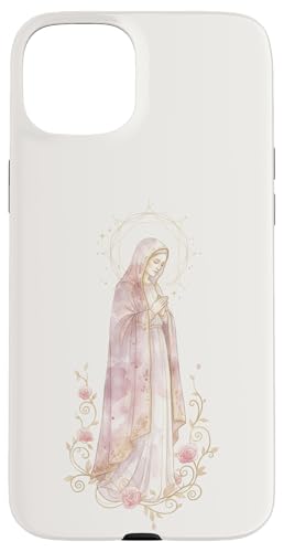 Prière catholique Florale de la Vierge Marie Rose Coque pour iPhone 15 Plus