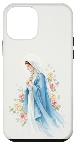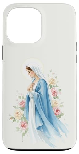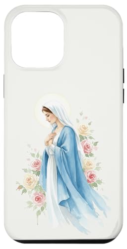 Prière catholique Vierge Marie Rose Bleu Coque pour iPhone 13 Pro Max