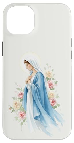Prière catholique Vierge Marie Rose Bleu Coque pour iPhone 14 Plus