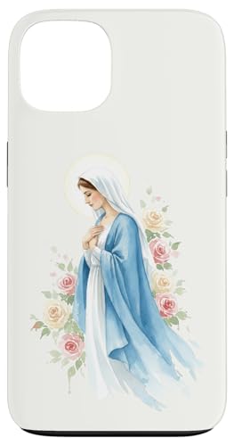 Prière catholique Vierge Marie Rose Bleu Coque pour iPhone 13