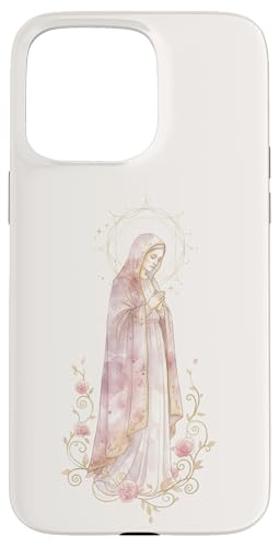 Prière catholique Florale de la Vierge Marie Rose Coque pour iPhone 15 Pro