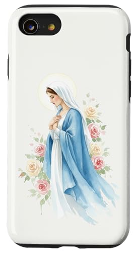 Prière catholique Vierge Marie Rose Bleu Coque pour iPhone SE (2020) / 7/8