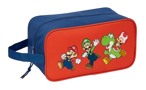 Super Mario Trick - Sac à Chaussures Moyen, Polyvalent, Sac à Chaussures, Sport, extrascolaire, Football, Confortable et Polyvalent, 29 x 14 x 15 cm, Bleu foncé/Rouge, M, Décontracté