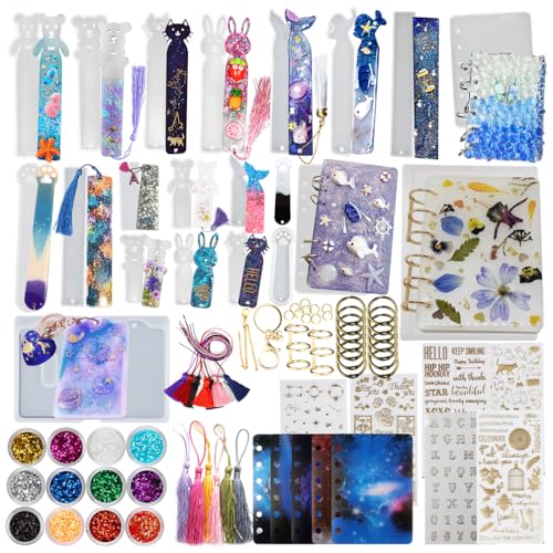 FUNSHOWCASE Lot de 86 moules en résine de silicone époxy pour cahier, marque-pages, marque-pages, couverture de carte, autocollants et porte-clés