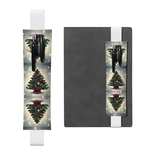 SDTYKHJ Porte-crayons en cuir avec bande élastique pour ordinateur portable, motif sapin de Noël, pochette à stylos, journal, marque-page pour ordinateurs portables de 20,3 cm à 10", noir, Noir ,