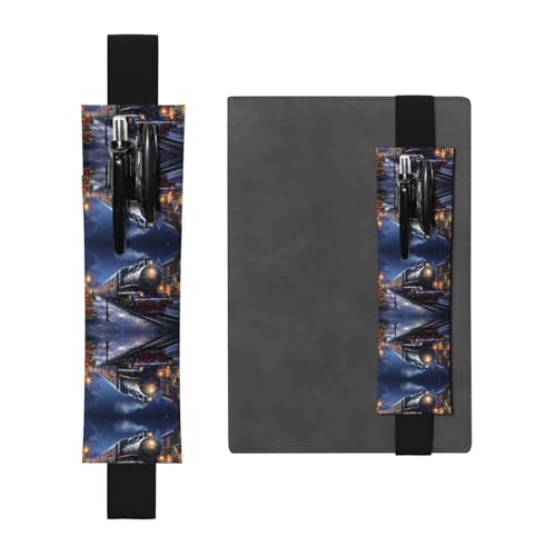 GGNKDL Porte-stylo en cuir, marque-page, hiver, Noël, nuit, train ferroviaire, motif pour journaux, agendas, planificateurs – Pochette à sangle réglable, Noir , Taille unique