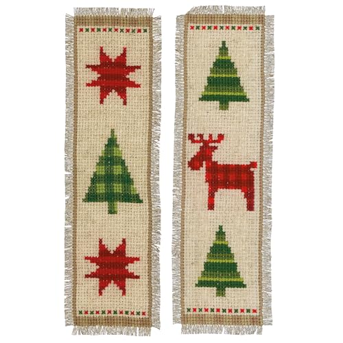 Vervaco De Point De Croix Compté Marque-Page DIY (lot de 2) MOTIFS DE NOEL Kit Complet Loisir Créatif Adulte Cadeau De Lecture Broderie Débutant ca. 6 x 20 cm Cross Stitch