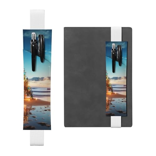 SDTYKHJ Porte-crayons en cuir avec bande élastique pour ordinateur portable, arbre de Noël sur la plage, pochette à stylos, journal, marque-page pour ordinateurs portables de 20,3 cm à 10", noir,