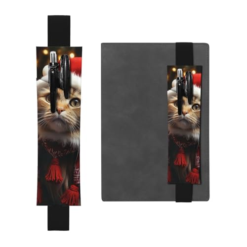 SDTYKHJ Porte-crayons en cuir avec bande élastique pour carnet de notes de Noël en forme de chat - Pochette réglable pour journal ou marque-page - Convient pour ordinateurs portables de 20,3 cm à 10"