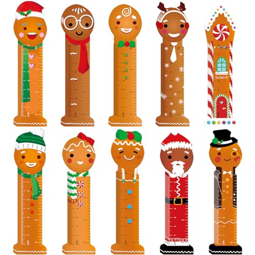 Dianelhall Lot de 160 règles de marque-page de Noël en plastique pour enfants avec clip « Merry Christmas » - Cadeau de Noël pour enfants, étudiants, récompenses (bonhomme en pain d'épice)