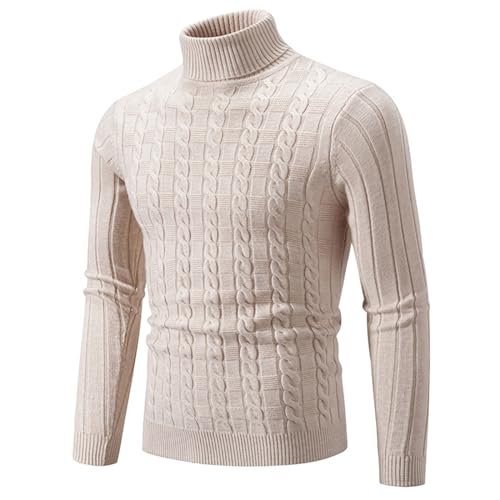 Générique Pull Col Roulé Homme À Manches Longues en Laine Épaisse À Col Roulé Torsadé Côtelé Confortable Chaud Pull Basique en Coton Pull Homme Marque