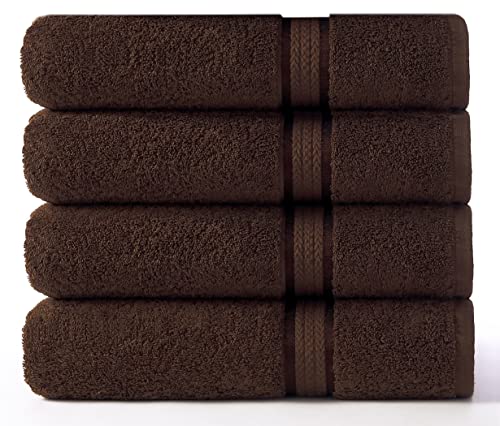 COTTON CRAFT Lot de 4 Serviettes de Bain de Luxe Ultra Douces en Coton filé à l'anneau, 580 g/m², Lourdes, 76,2 x 137,2 cm, Marron Chocolat