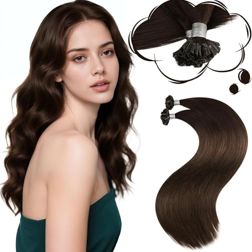 Moresoo Extension Cheveux Naturel Keratine Marron Foncé Remy Extension Cheveux Keratine a Chaud Marron Chocolat 50 Mèches 50g #4 45 cm/18 Pouce