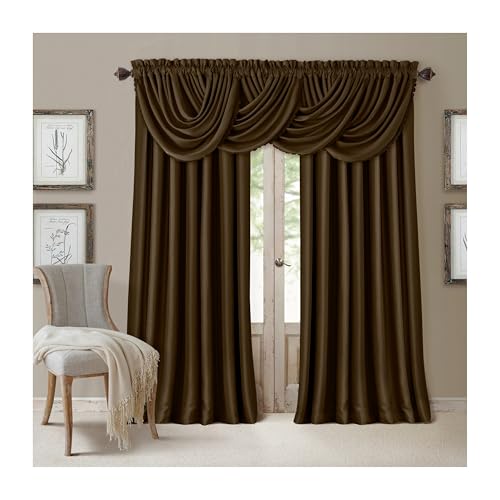 Elrene Home Fashions Versailles Rideau occultant en Soie synthétique avec Passe-Tringle, 132,1 x 274,3 cm, Marron Chocolat, 1 Panneau