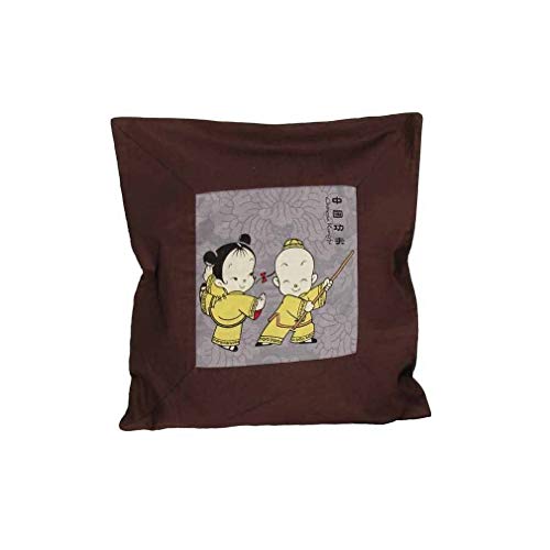 lachineuse - Housse de Coussin Asiatique - Modèle Rois du Kung Fu - 43x43 cm - Coton - Marron Chocolat - Motif Humoristique - Déco Japonaise - Salon, Chambre - Idée Cadeau Asie