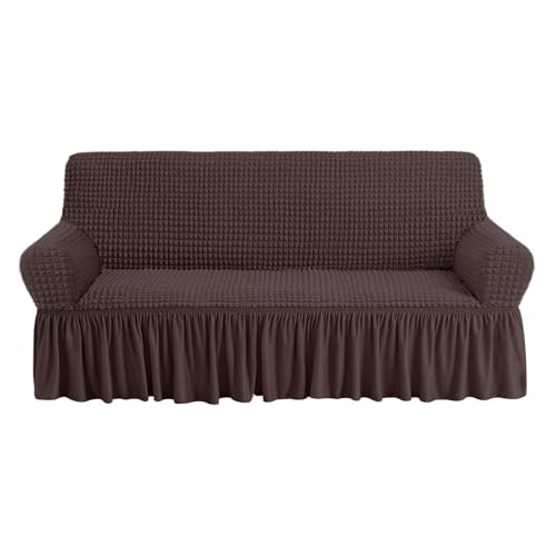 NICEEC Housse de canapé Marron, 1 pièce, Facile à Ajuster, Housse de canapé Universelle, Haute élasticité et Durable, Protection de Meubles avec Jupe, Style campagnard (3 Places, Marron Chocolat)