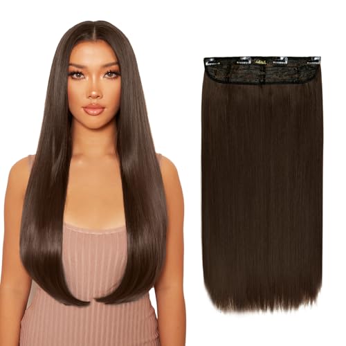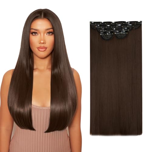Lullabellz Lot de 5 extensions de cheveux raides à clipser super épais, 66 cm de long, marron chocolat