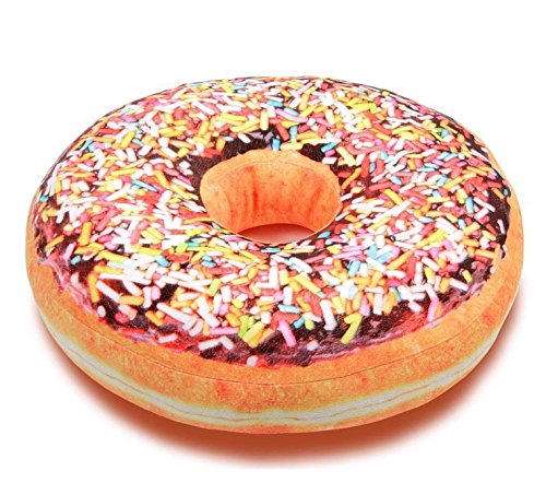 Markenlos Donut Doughnut Coussin avec Chocolat Marron et Paillettes Multicolores Ø 40 cm
