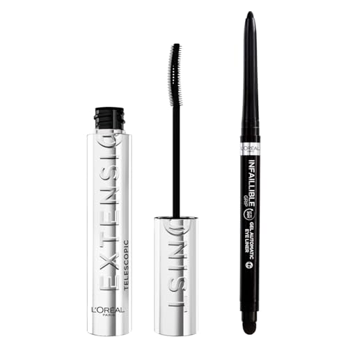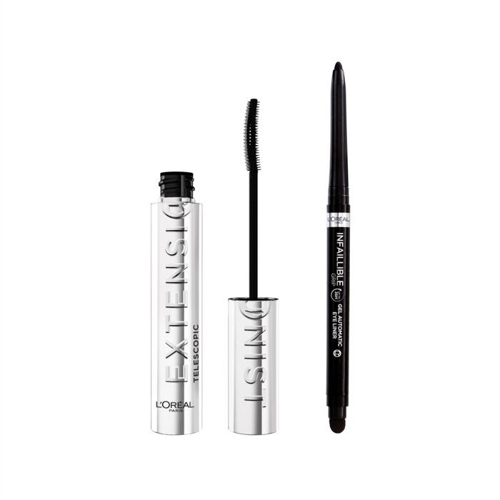 L'Oréal Paris - Duo Mascara Telescopic Extensionist & Eyeliner Infaillible Grip Liner - Convient aux Yeux Sensibles - Longue Tenue - Couleur Noir Intense
