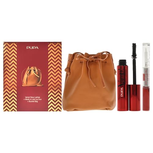 PUPA Milano Vamp! Sexy Lashes And Made To Last Lip Duo Set - Lengthens And Separates Lashes - Defines Lips, Adds Color And Shine - Paraben-Free Formula - Mascara, Lipstick And Bag - 3 Pc Mascara Kit