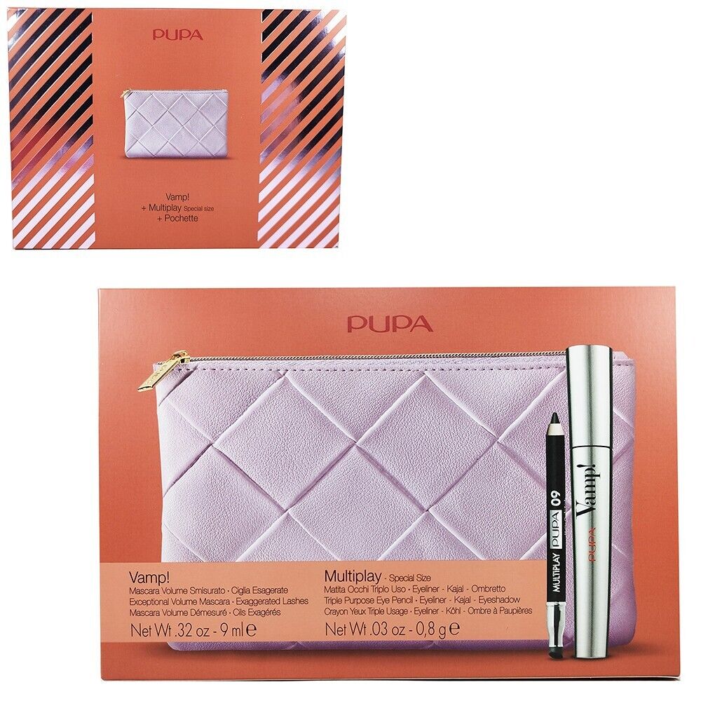 Pupa Milano Vamp! All in One and Multiplay Set For Women 3 Pc 0.30oz Vamp! All in One Mascara - 101 Black, 0.03oz Multiplay Eye Pencil - 09 Black, Wallet