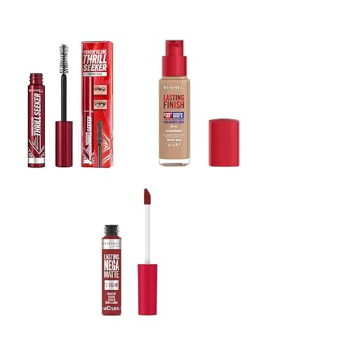 Lot Rimmel - Wonder'Volume Thrill Seeker Mascara + Rimmel London Lasting Finish 35 Hour 200 Soft Beige+ Rimmel London Lasting Mega Matte Rouge à lèvres liquide 500 Fire Starter