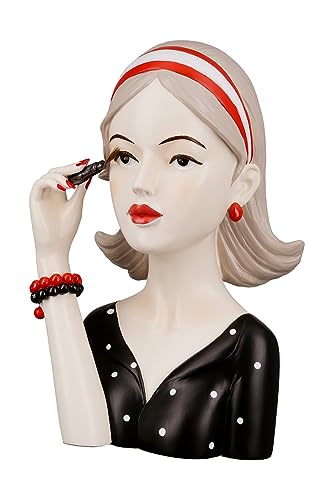 Gilde Sculpture décorative Lady T-Shirt Noir – Bouche Rouge Mascara – décoration Salon – Hauteur 26 cm – Noir Rouge crème