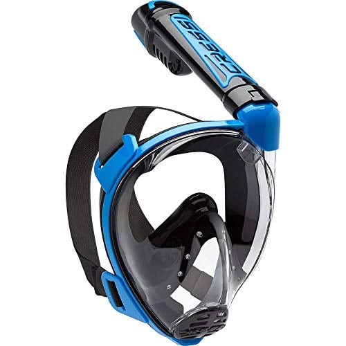 CRESSI Java Full Face Mask Black/Blue S/M-Masque Intégral de Snorkeling, Lentille Anti Buée Ultra Claire, 100% Silicone, Tuba Sec avec Soupapes de Sécurité, Noir/Bleu, S/M