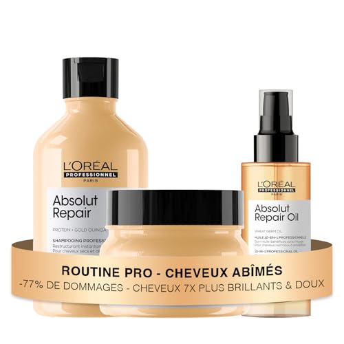 L'OREAL PROFESSIONNEL - Coffret Cadeau - Cheveux Abîmés - Absolut Repair - 77% de Dommages en Moins - Cheveux Brillants & Doux - Édition Limitée - Shampoing (300ml) + Masque (250ml) + Huile (90ml)