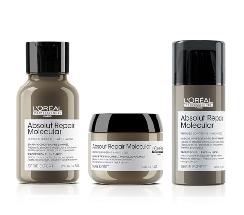 L'OREAL PROFESSIONNEL - Routine Pour Cheveux Très Abîmés - Absolut Repair Molecular - Répare & Adoucit - 3x + de Force & Trasformation Instantanée - Shampoing (300ml) + Masque (250ml) + Sérum (250ml)