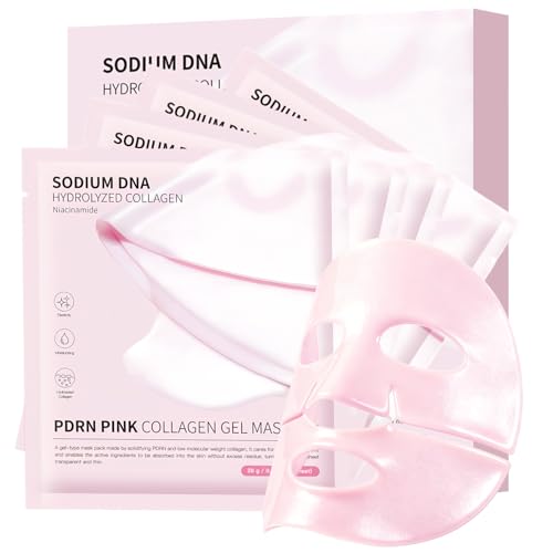 Masque Collagene Visage, Bio Collagen Mask, Masque bio collagene, Pink Collagen Gel Mask, Pore Minimisation, Hydratation profonde, Réduisez les rides, Anti-âge, 4 EA