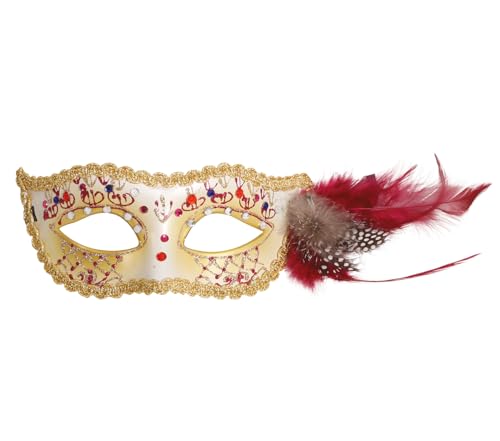 FIESTAS GUIRCA Masque blanc avec plume rose