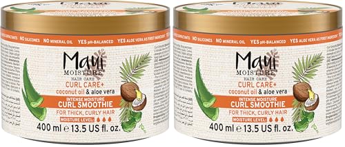 Maui Moisture | Masque capillaire Smoothie Curl Care + Coconut Oil (pot de 400 ml) – Soin cheveux hydratant à l'huile de noix de coco – Masque végan pour cheveux épaix et bouclés (Lot de 2)