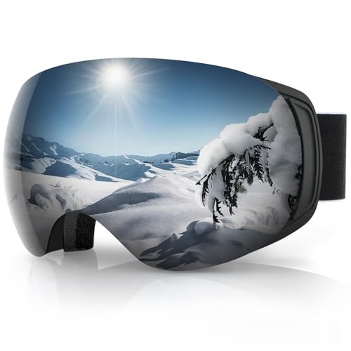 Findway Masque de Ski Magnetique, Lunettes de Ski Femme Homme OTG pour Snowboard et Ski Anti-buée, Anti-UV 400,Noir Interchangeables Lentille Sphérique