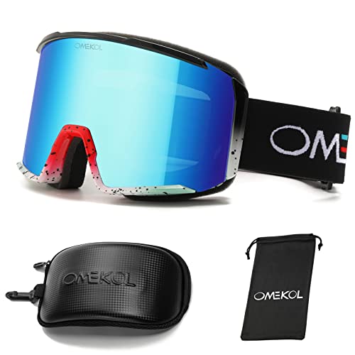 OMEKOL Lunettes de ski double couche anti-buée OTG pour homme et femme - Lunettes de snowboard - Masque de motoneige - Lunettes de sport en plein air (G12)