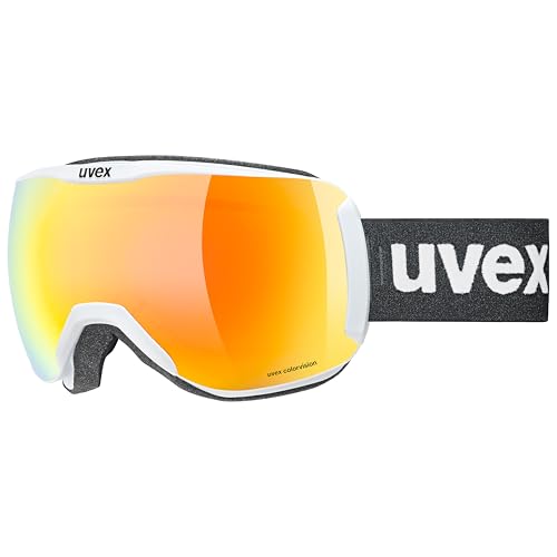 Uvex Downhill 2100 Cv - Masque de Ski pour Hommes et Femmes - à Contraste Élevé - Sans Distorsion et Anti-Buée - White Matt/Orange-Green - One Size