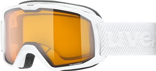 uvex Elemnt Lgl - Masque de Ski pour Hommes et Femmes - à Contraste Accentué - Champ de Vision Élargi et Anti-Buée - White/lasergold Lite-Clear - One Size