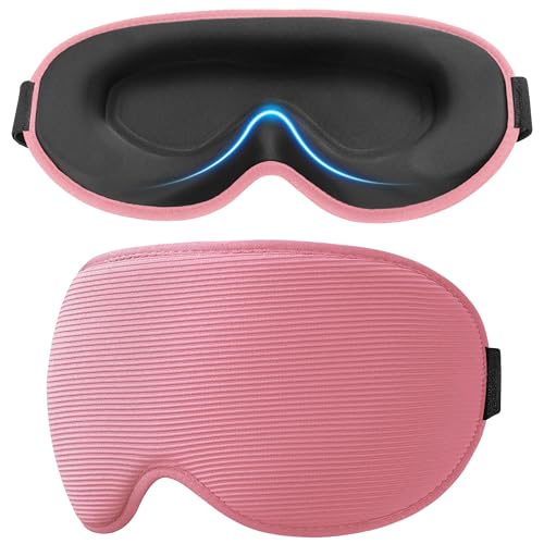 Masque de Nuit, Cache Yeux pour Dormir Avec Bandeau Réglable,Zero Pression-Design Ergonomique 3D, Masque de Voyage 3D Anti-lumière, Masque de Sommeil pour Hommes et Femmes-Rose