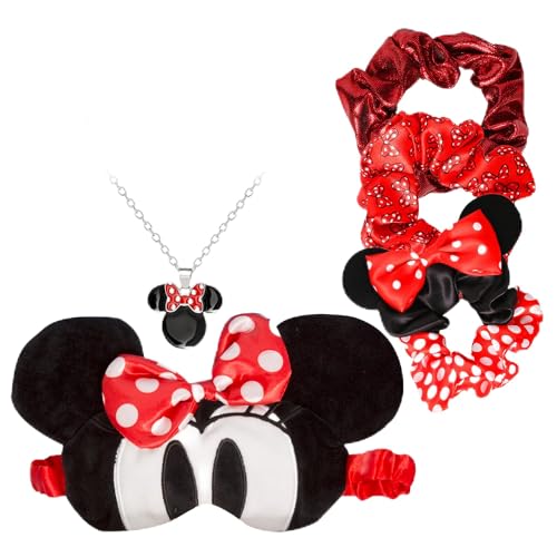Disney Minnie Mouse Masque de sommeil, ensemble chouchou avec collier et boucles d'oreilles VS700658L.PH