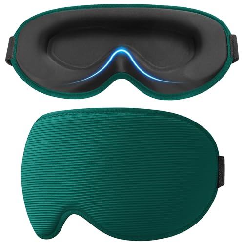 Gritin Masque de Nuit, 3D Masque de Sommeil 100% Anti-Lumière, Zéro Pression Oculaire&Design Elargi sur le Côté, Ultra-Douce&Confortable avec Bande Réglable, Cache Yeux pour Dormir,Cyan foncé