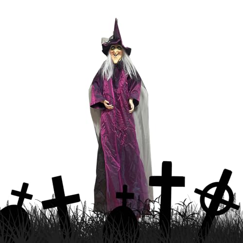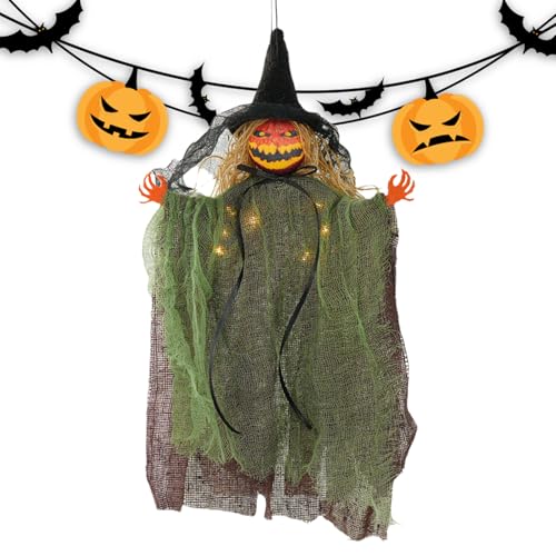 Whnbuij Décoration de sorcière d'Halloween, pendentif de sorcière avec yeux LED clignotants et sons effrayants – Pendentif d'Halloween, décorations de vacances effrayantes pour bal masqué, mur, cour