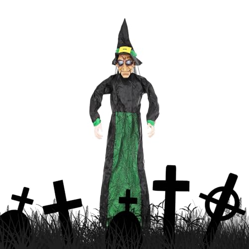 Décoration de sorcière d'Halloween – Décoration de sorcière avec yeux lumineux activés par le son | Accessoire effrayant de maison hantée pour cour, salle de classe, bal masqué, carnaval, entrée