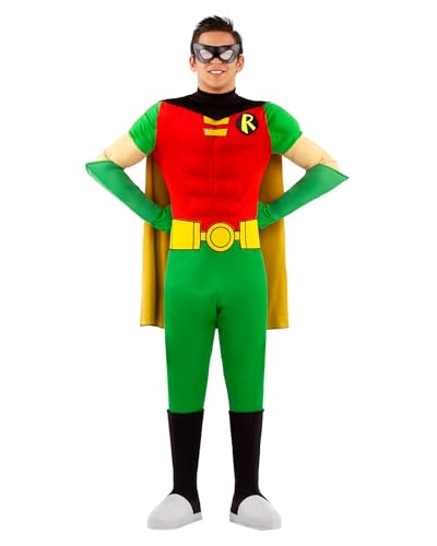 Funidelia Déguisement Officiel de Robin pour homme, Comprend combinaison, couvre-bottes, cape, ceinture, gants et masque, Super-héros - Tenue pour adultes pour fêtes, Carnaval et Halloween - Taille XL
