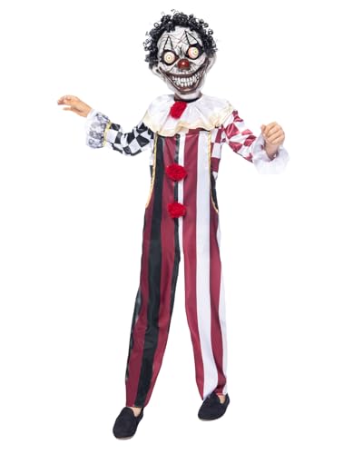 W WIDMANN MILANO Party Fashion - Déguisement pour enfant Clown tueur, haut, col, masque avec yeux lumineux, 3 voix de clown tueur, Halloween