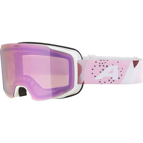 ALPINA TAOS Q-LITE – masque de ski avec verres miroités et amélioration des contrastes, protection UV 100%, pour adultes - white-rose matt - M