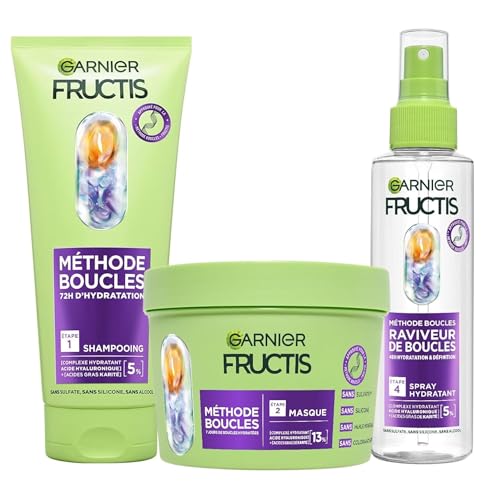 Garnier - Fructis Méthode Boucles - Routine 3 Produits - Shampoing, Masque & Spray Hydratant - Enrichie en Acide Hyaluronique & Beurre de Karité - Pour Tous les Types de Boucles