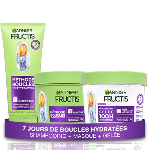 Garnier Fructis Méthode Boucles - Routine 3 Produits pour Cheveux Bouclés : Shampooing, Masque & Gelée Capillaire Hydratante - Acide Hyaluronique - Hydratation & Définition - Tous Types de Boucles